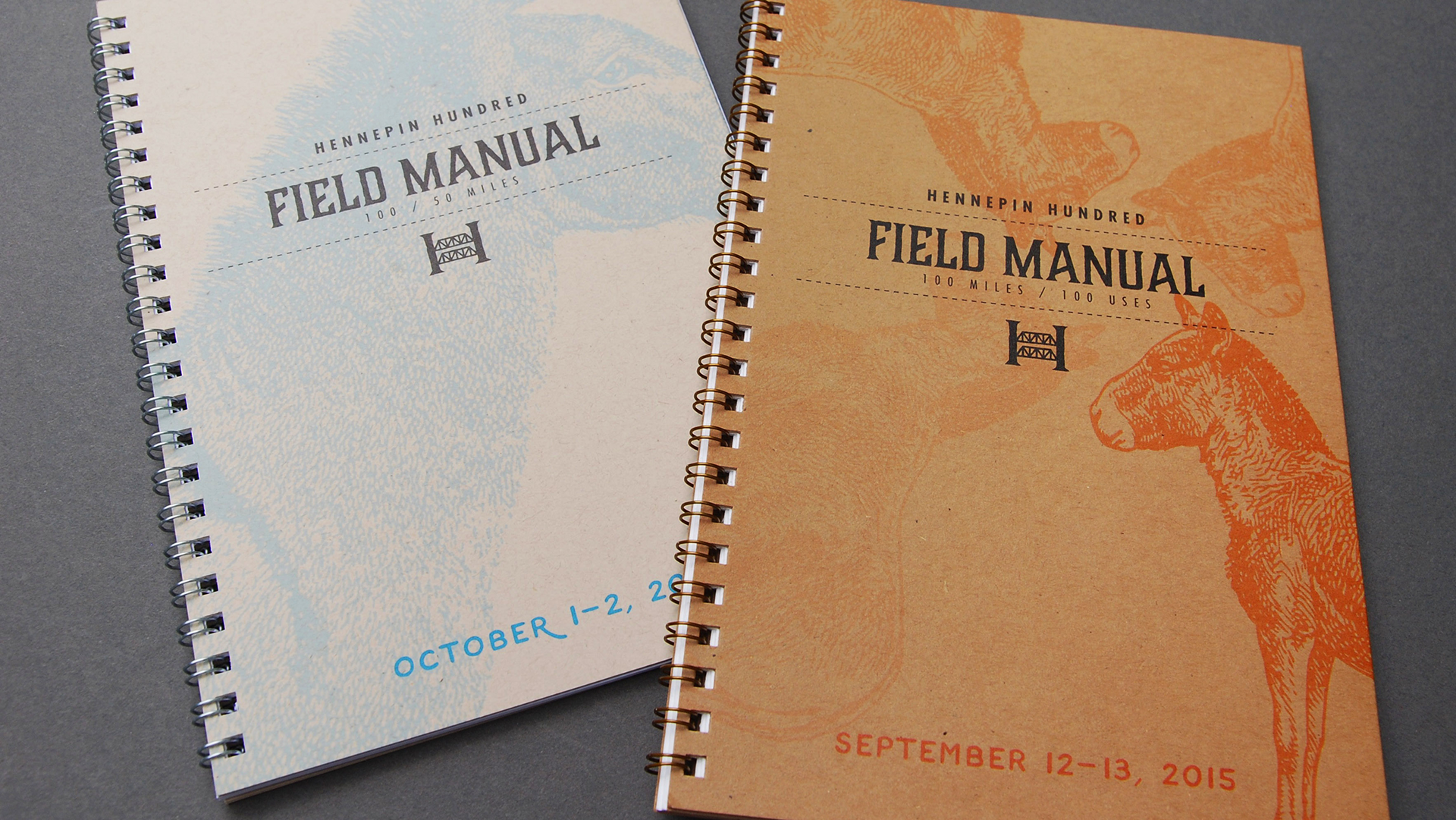 The Hennepin Hundred is a 100/50 mile ultra-marathon. Branding materials leveraged the rural mid-western feel, and materials highlighted the beautiful farm country scene along these epic runs, while still being playful and humorous.